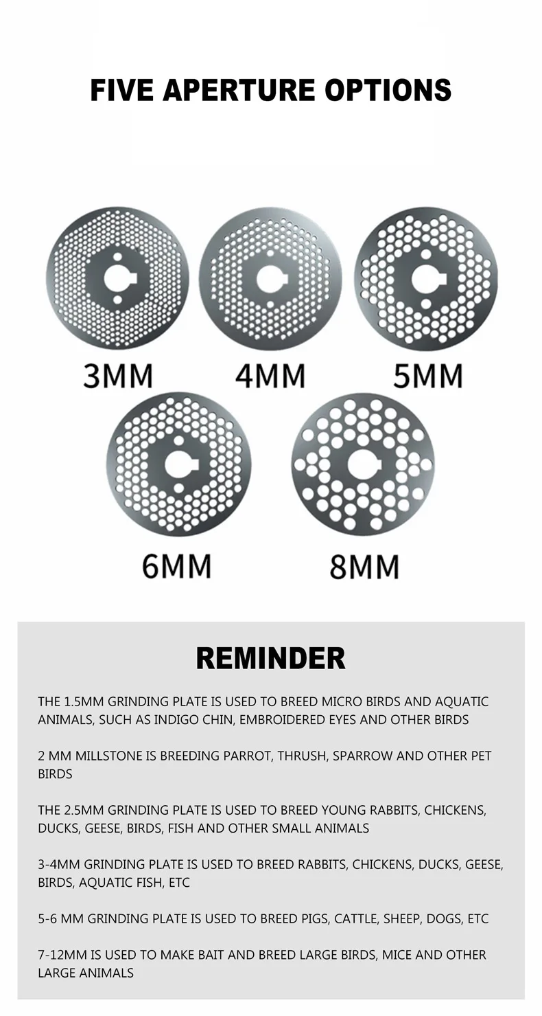Taille des granulés finaux :3 à 8 mm selon vos besoins